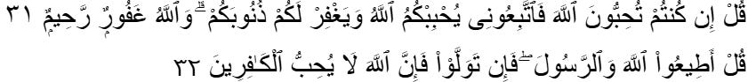 31: Say, if you love Allah, then follow me; Allah will love you and forgive you for your sins, and Allah is All-Forgiving, Most Merciful.